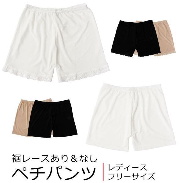 ペチパンツ レディース ペチコート キュロット ペチパン パンツ ショートパンツ レース シンプル 裾レース チラ魅せ ホットパンツ 薄手 フリーサイズ y2