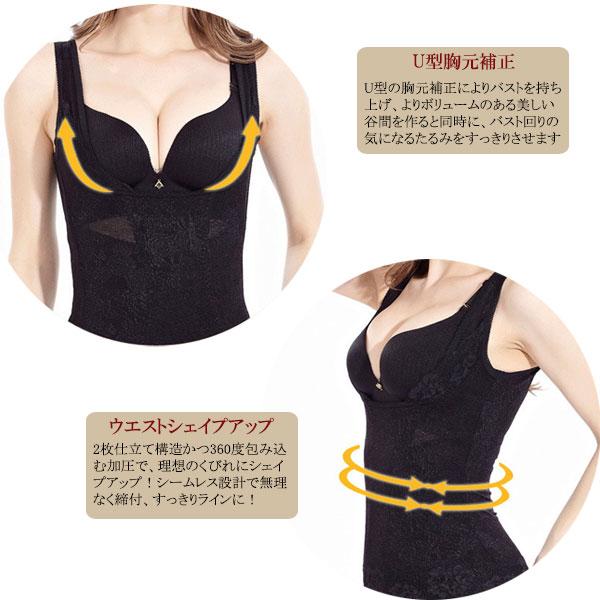 補正下着 ボディシェイパー キャミソール 下着 刺繍レース ボディーシェイパー 花柄 矯正下着 シェイプアップ レディースインナー ダイエットインナー UDW 6855