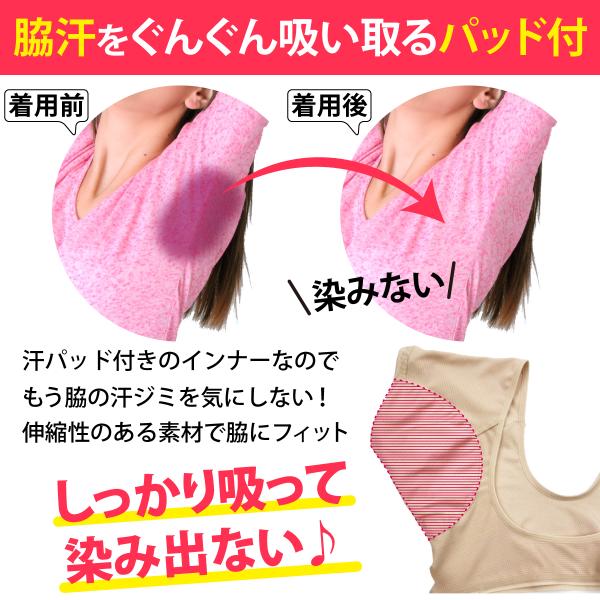 脇汗 対策 汗取り インナー 脇汗インナー 脇汗 汗取りパット付 汗取りパット 吸汗 速乾 短め 薄い 半袖 夏用 下着 レディース 送料無料