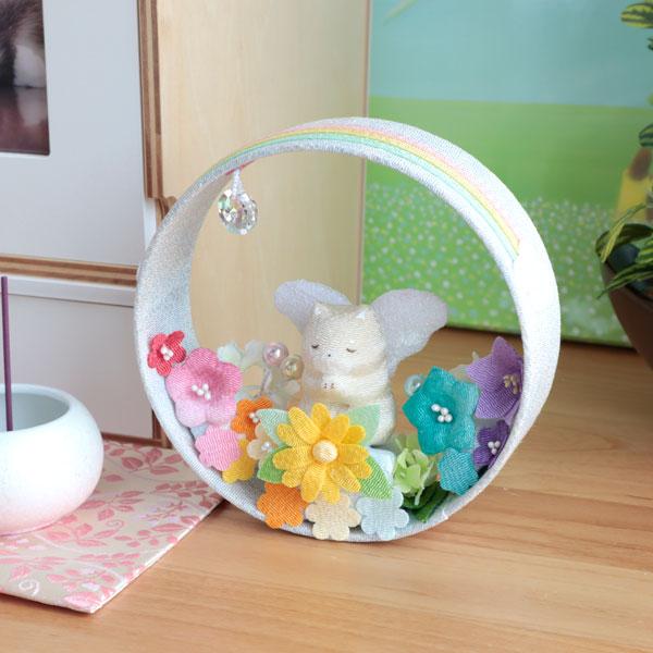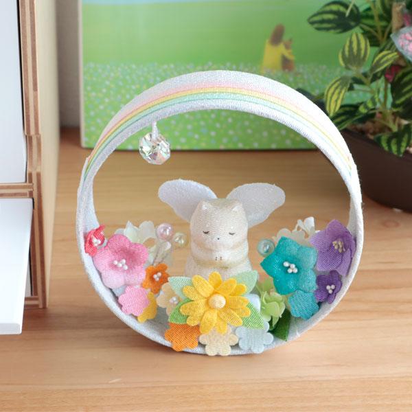 ペット お悔やみ花 贈り物 ちりめん天使と虹の花飾り 犬 猫 メモリアルグッズ ギフト