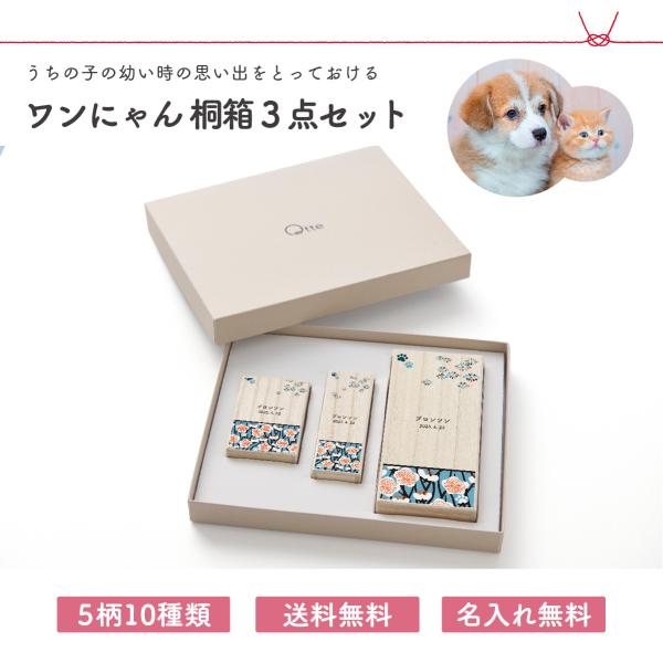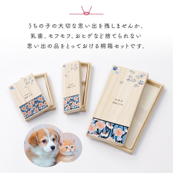 ワンにゃん桐箱3点セット プレゼント ギフト いぬ イヌ ペット ネコ 猫 かわいい 愛犬 桐製 桐箱 木製 日本製 記念 保存 保管 収納 名前入り 被毛