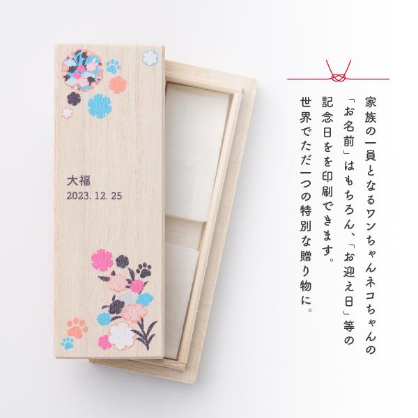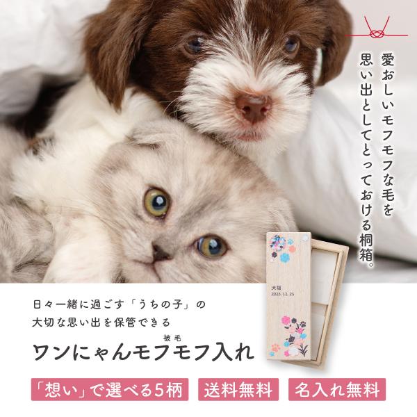 ワンにゃんモフモフ入れ プレゼント ギフト いぬ イヌ ペット ネコ 猫 かわいい 愛犬 桐製 桐箱 木製 日本製 記念 保存 保管 収納 名前入り 被毛