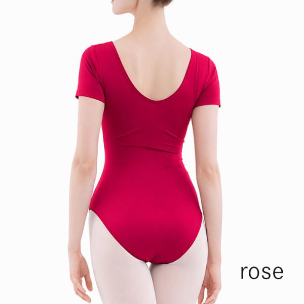 バレエ レオタード 大人 ジュニア 綿混 女性 半袖 袖あり Vネック コットン パッド差込可 裏生地付 大きいサイズ 伸縮 シンプル レッスン用 ダンス 無地 黒 va1