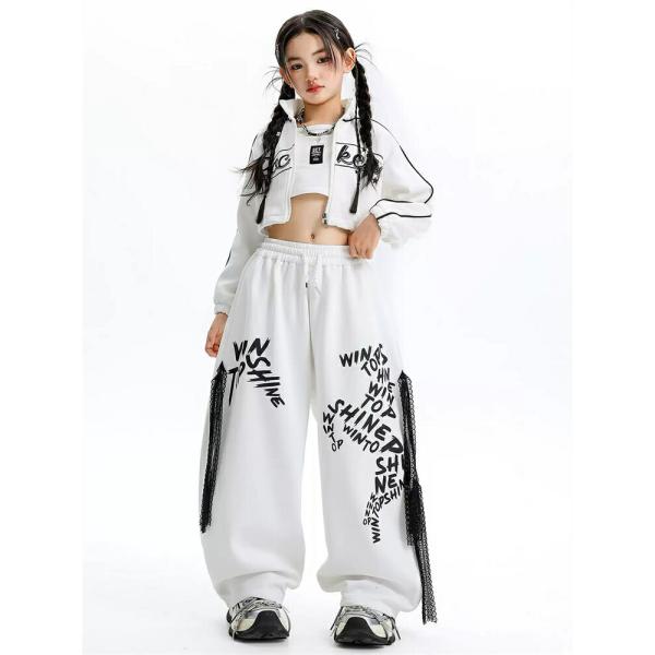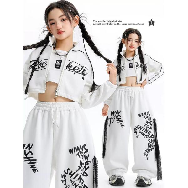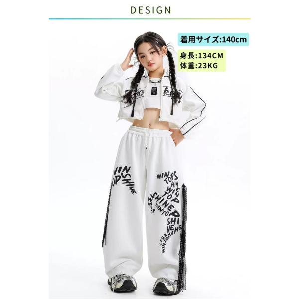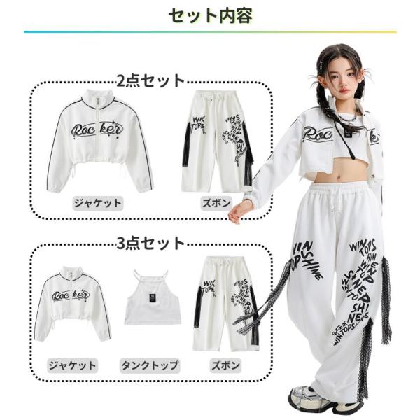 キッズ ダンス 衣装 セットアップ 女の子 ヒップホップ 白 へそ出し トップス パンツ KPOP 韓国 ストリート系 ダンス衣装 発表会 練習着 かっこいい