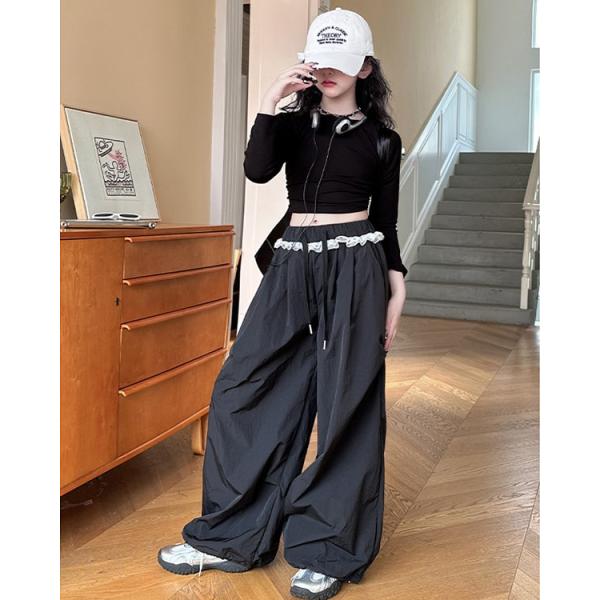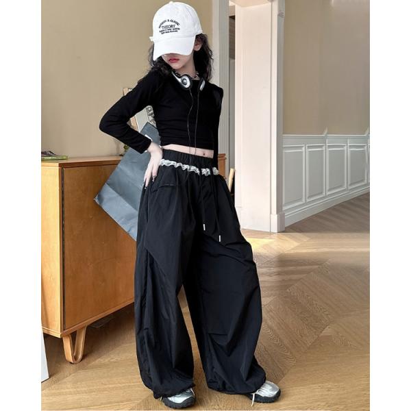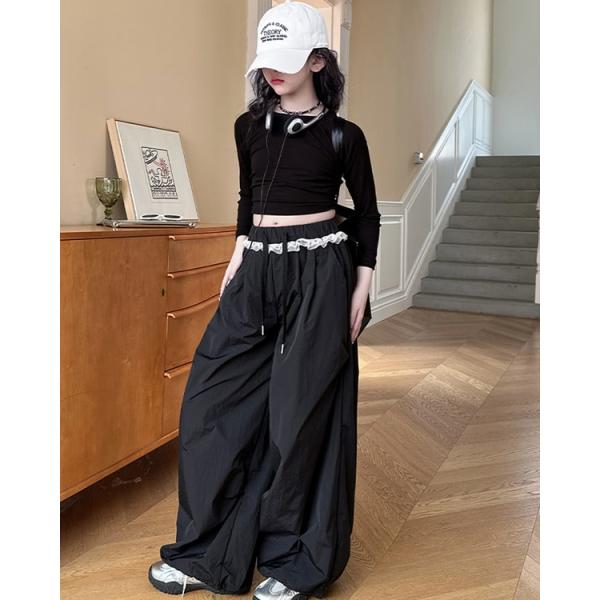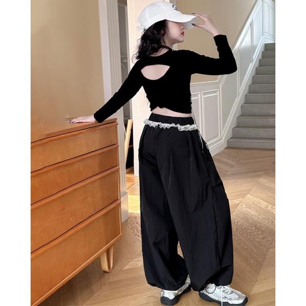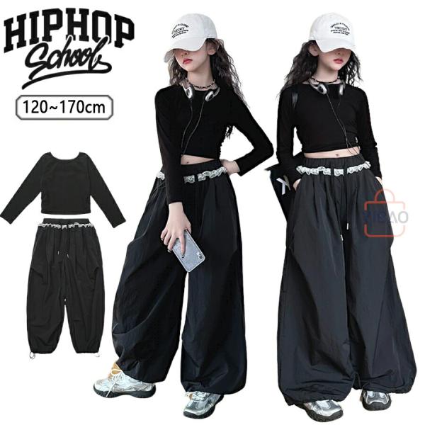 キッズ ダンス 衣装 女の子 レースのレース k-pop衣装 へそ出し トップス 黒 ズボン ジャズダンス 演出服 ステージ 練習 キッズダンス 舞台服 かっこいい 韓国風