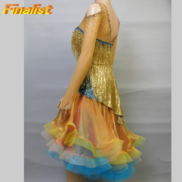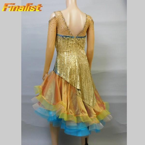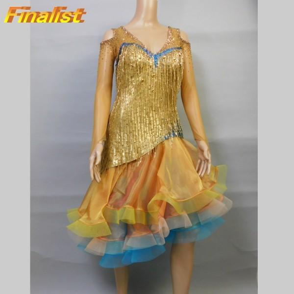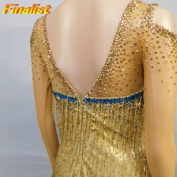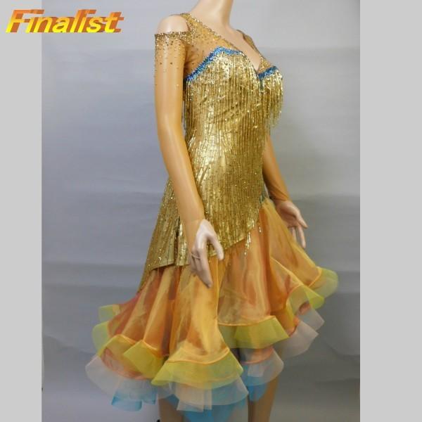社交ダンス 中古ラテンドレス ヤナギダ製 ゴールド竹ビーズ