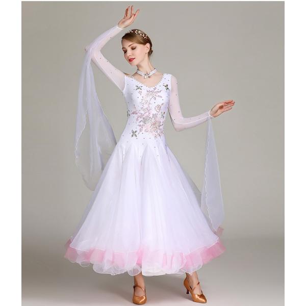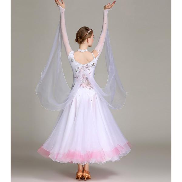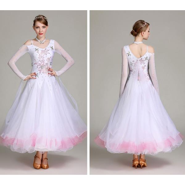 Garuda SHOP 社交ダンス競技ドレス デモ用 発表会用演出服 ファッションパーティー用ドレス ダンス試合服 ホワイト 品番1052