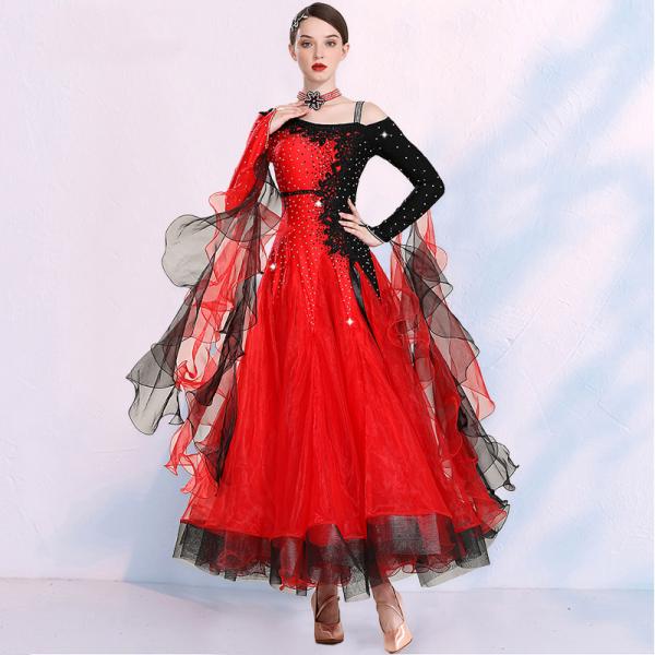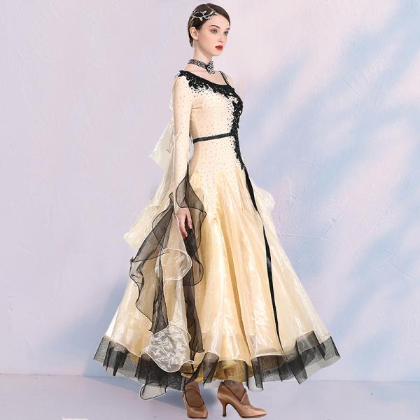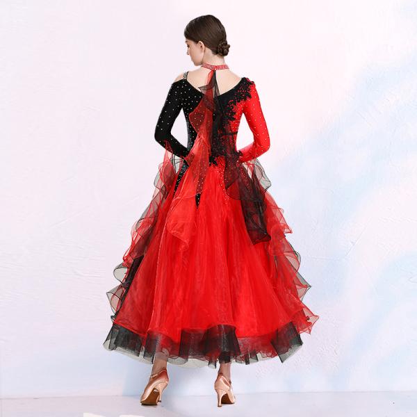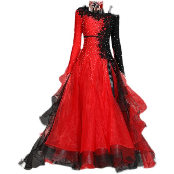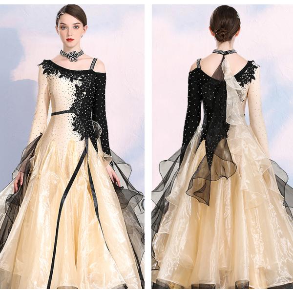 Garuda SHOP 社交ダンス衣装レディースモダンドレス 発表会ワルツドレス モダン競技試合ワンピース 豪華新作2色 サイズ調整対応 品番3771