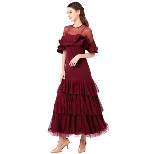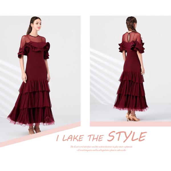 Garuda SHOP 社交ダンス衣装レディース ダンスレッスン練習ロングワンピース 競技会試合ドレス モダンドレス 軽い 4色 品番5434