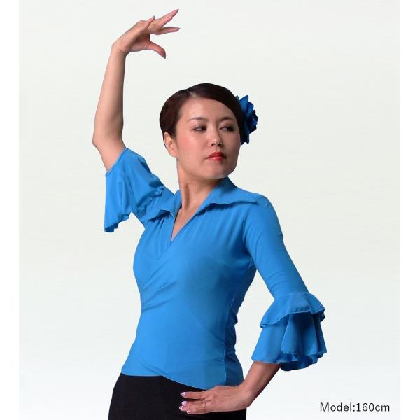 フラメンコ カシュクールブラウス ブルー フリーサイズ 1005