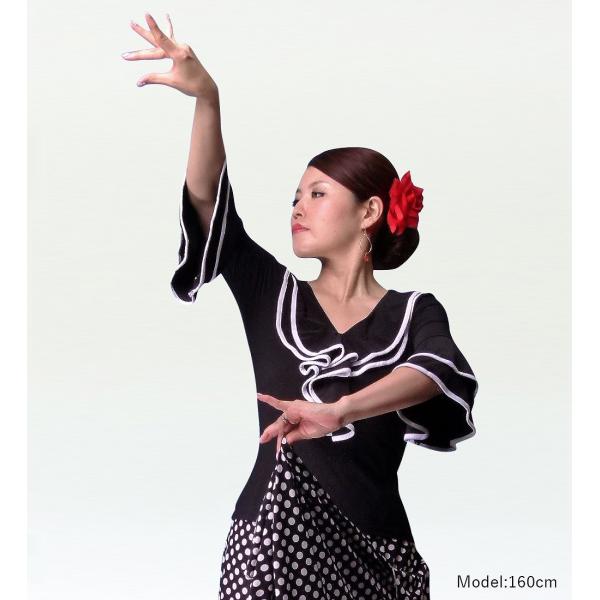 フラメンコ ブラウス ブラック ホワイトライン LLサイズ 141LL
