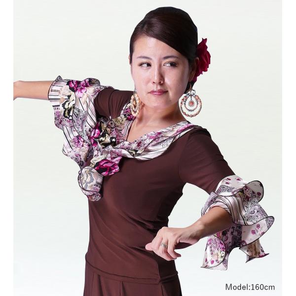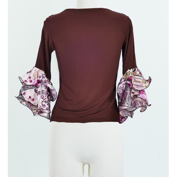 フラメンコ ローズ&ペイズリーフリル ブラウス ブラウン フリーサイズ 1901br