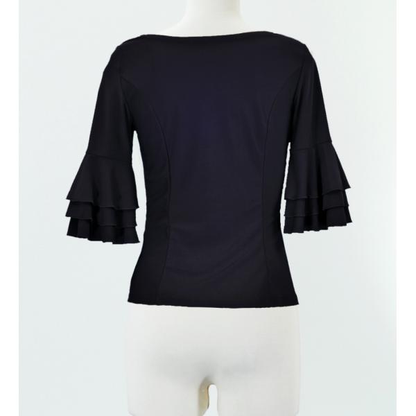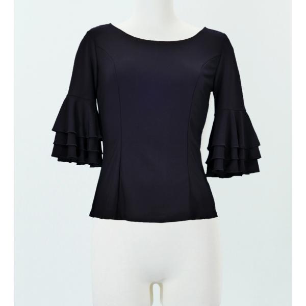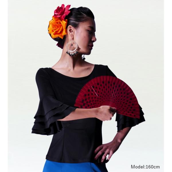 フラメンコ 3段フリル ブラウス ブラック F(M)サイズ 2481bkf