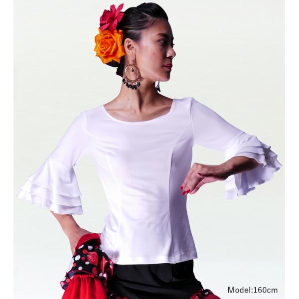 フラメンコ 3段フリル ブラウス ホワイト F(M)サイズ 2481whf