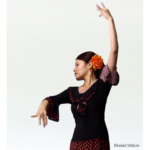 フラメンコ 水玉フリル ブラウス オレンジ LLサイズ 884oLL