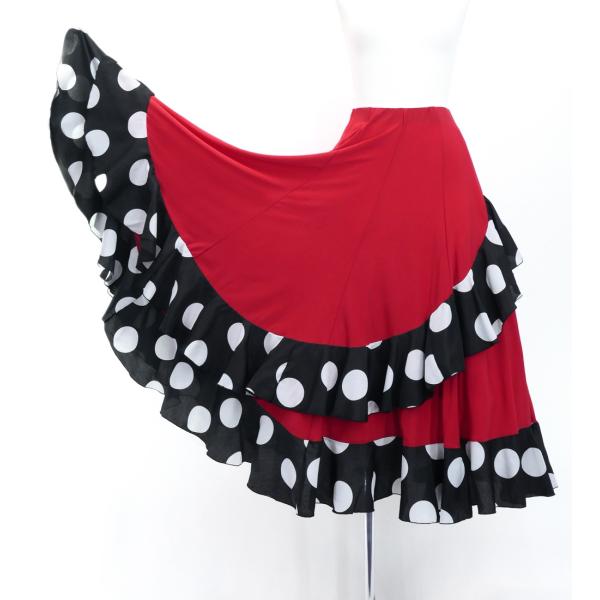 フラメンコ 水玉 斜めフリル ファルダスカート レッド Mサイズ 3047rd