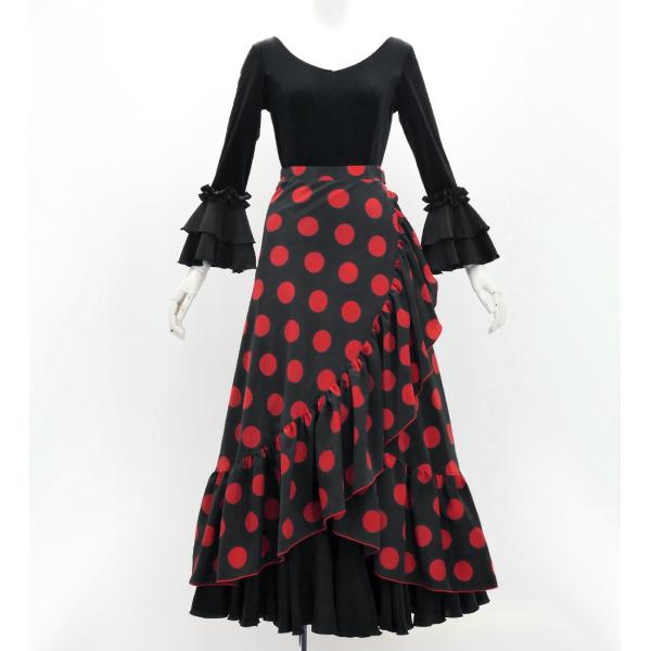 フラメンコ 巻きスカート 水玉 ブラック×レッド Fサイズ FMS-1