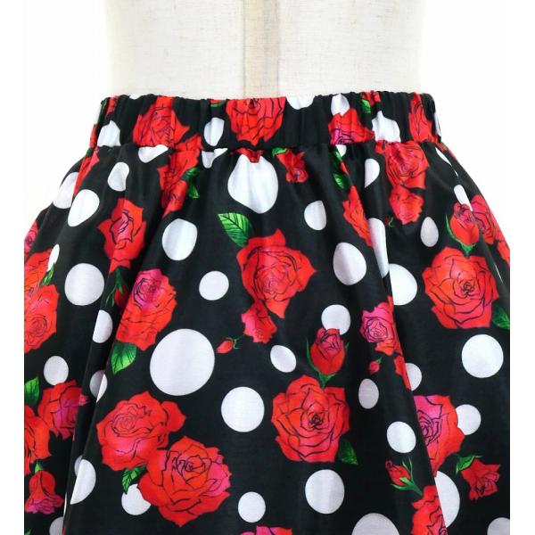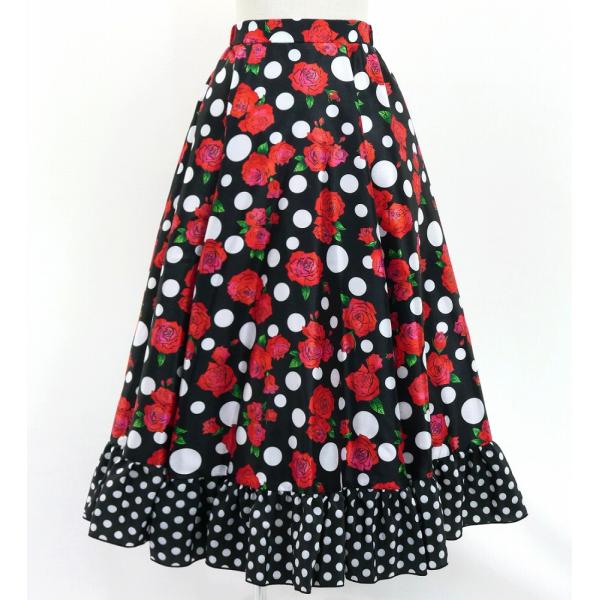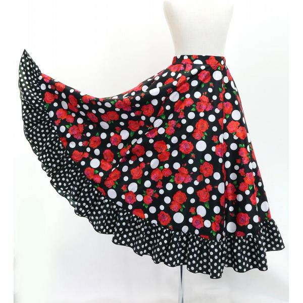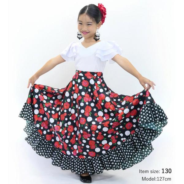 キッズ フラメンコ フリル ロングサーキュラースカート ローズ×水玉 ブラック×レッド 120・140サイズ FSp-6