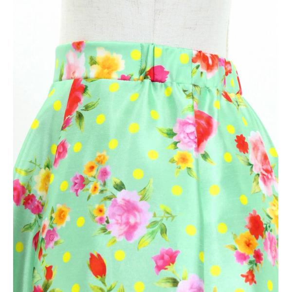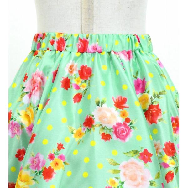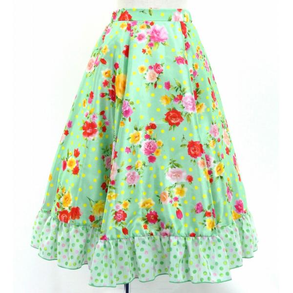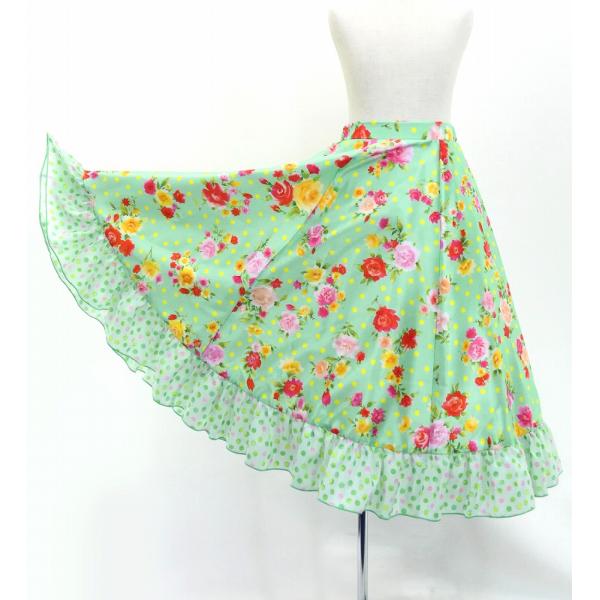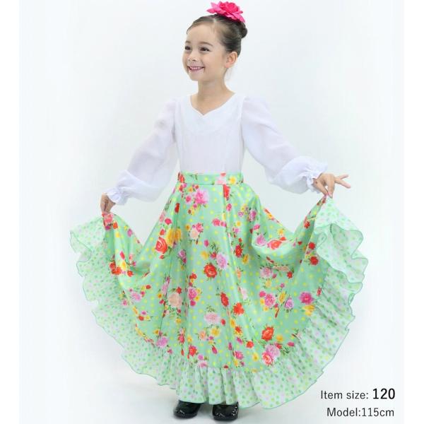 キッズ フラメンコ フリル ロングサーキュラースカート ローズ&カーネーション ライトグリーン 120・140サイズ FSp-8