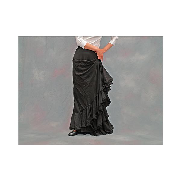 フラメンコスカート フラメンコファルダ フラメンコ衣装 練習用 黒無地 ウエストゴム 格安 サラ モデル マラガII
