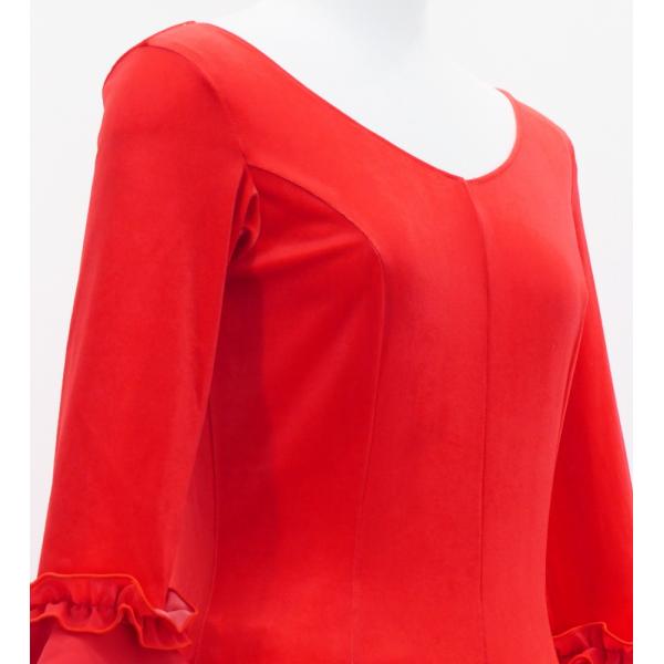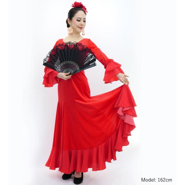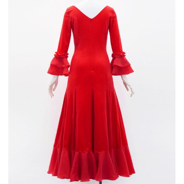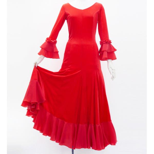 フラメンコ ベルベット フリル ワンピース ダークレッド S-Lサイズ FD-2