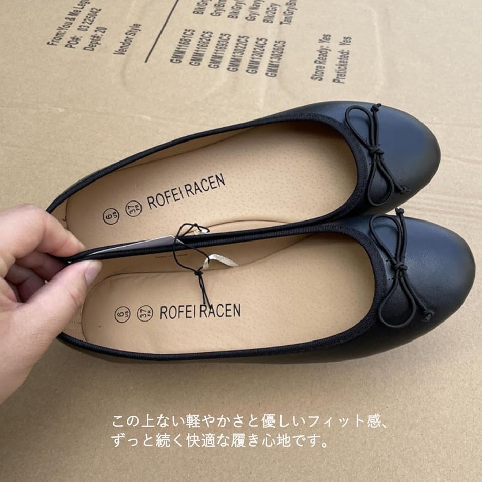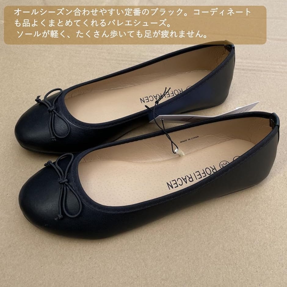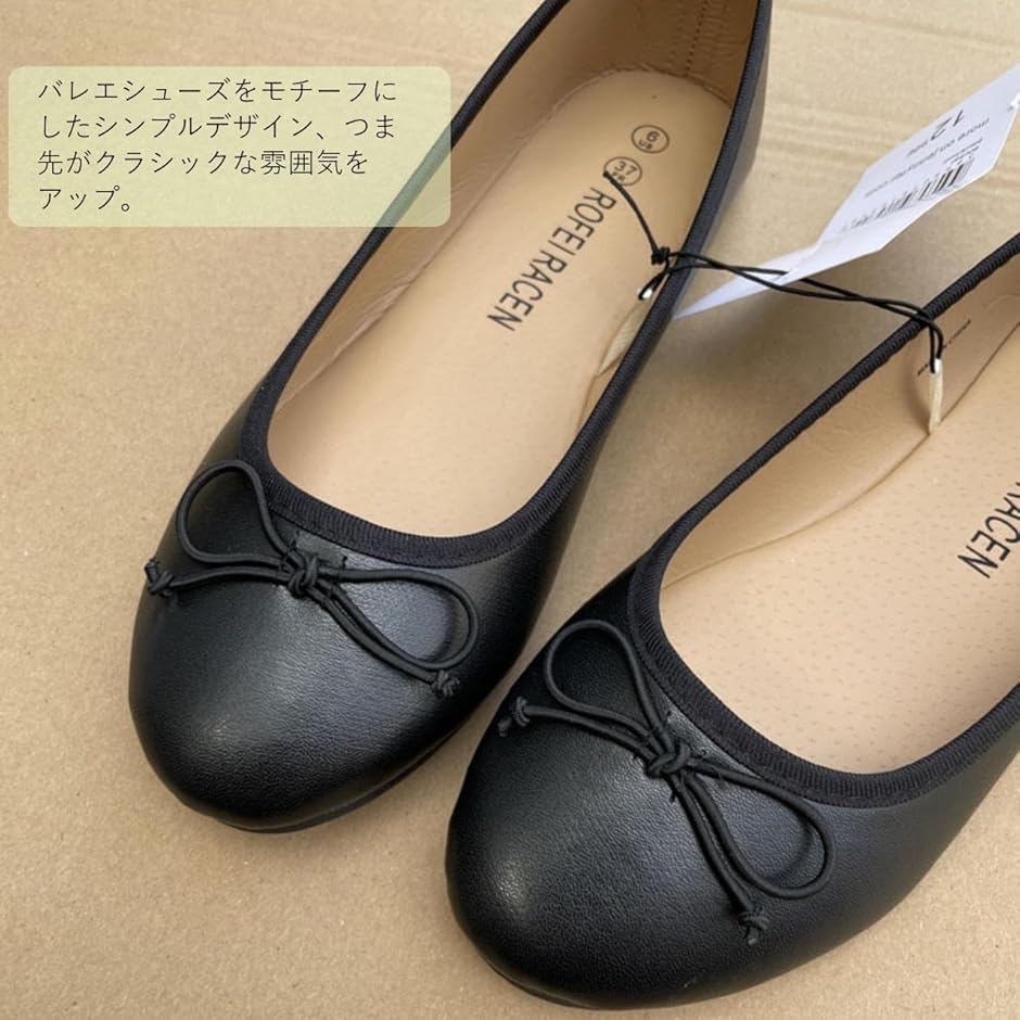 バレエシューズ リボン パンプス フラット ラウンドトゥ レディース 歩きやすい 大人 可愛い ぺたんこ (ブラック, 25.5 cm)