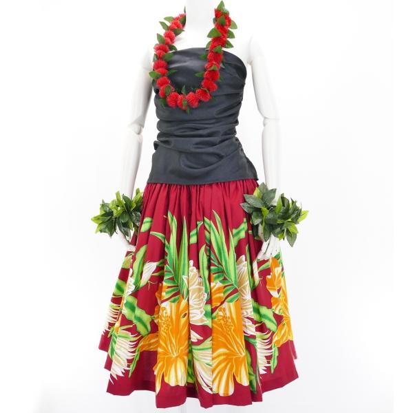 フラダンス パウスカート シングル73cm丈 レッド 2813