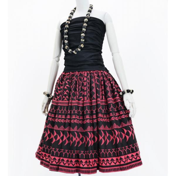 フラダンス パウスカート シングル73cm丈 ブラック 2989