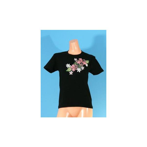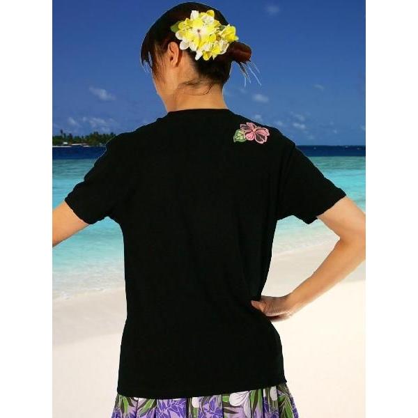 フラダンス Tシャツ L ハイビスカス&ティアレ ブラック 790lb