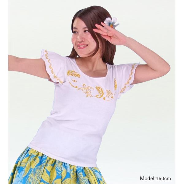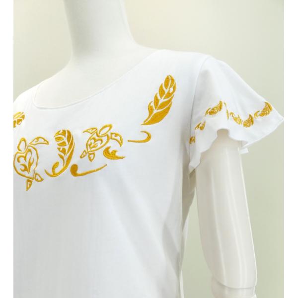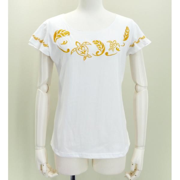 フレンチフリル Tシャツ F 刺繍ゴールド ホヌ ホワイト kd6gwF