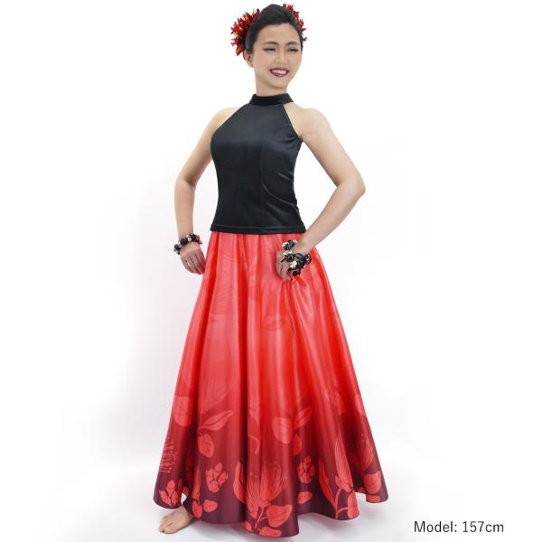 フラダンス [S・M・Lサイズ] ロングサーキュラースカート シャンタン レッド J2716rd
