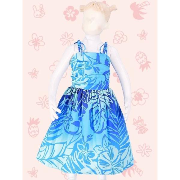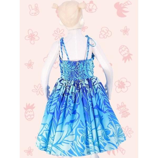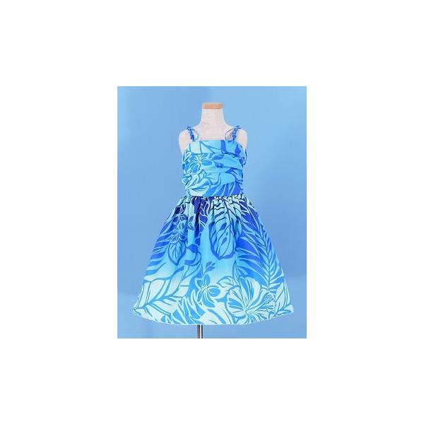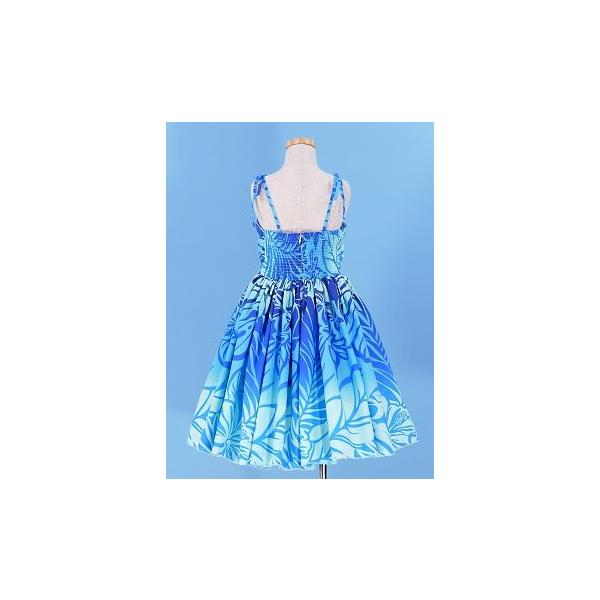 フラダンス ケイキ(キッズ) ドレープ ミディ丈 ムームードレス ブルー Mサイズ cw26