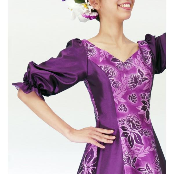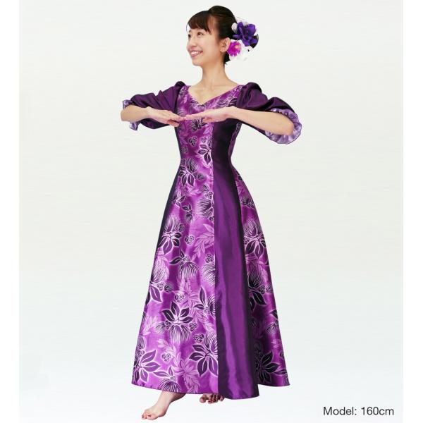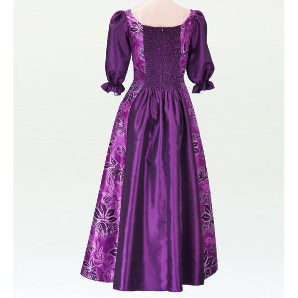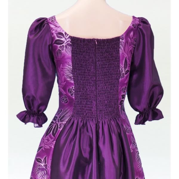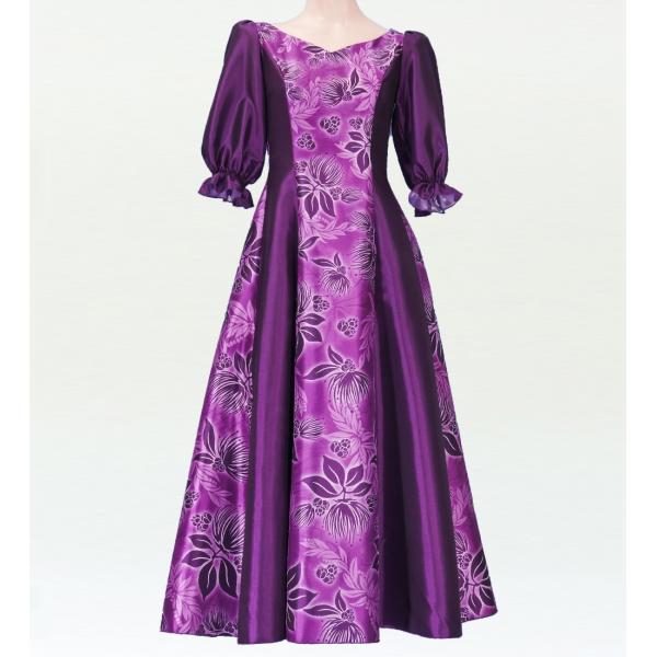 フラダンス [S-LLサイズ] ムームー ロング丈 シャンタン袖口ドレス パープル J2338p