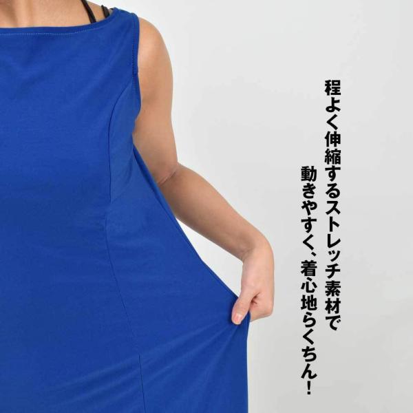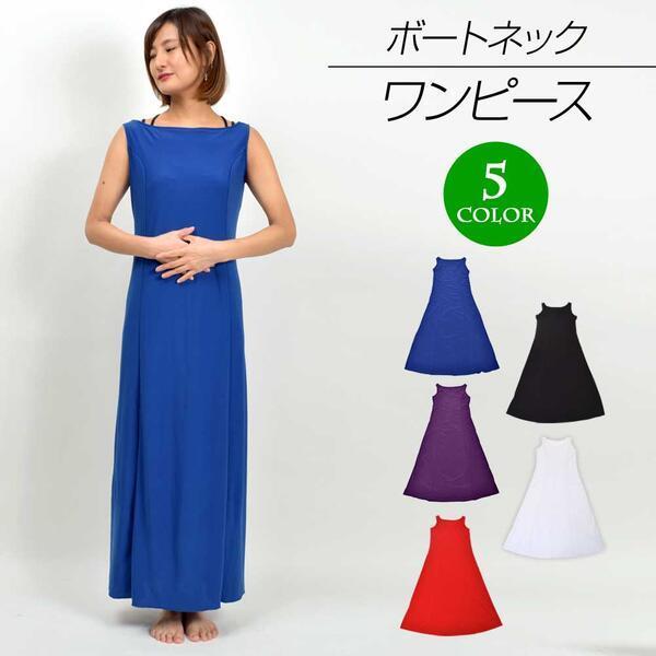 フラダンス 衣装 ワンピース ドレス シンプル 袖なし ダンスドレス ダンスワンピ レディース 伸縮素材 ノースリーブ ボートネック Aライン T98158 [M便 2/3]