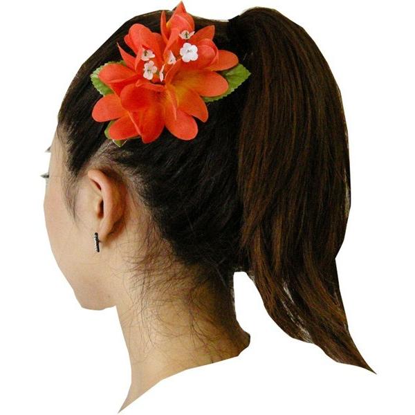 フラダンス 髪飾り Eプルメリア ヘアクリップ オレンジ