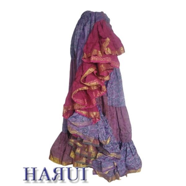 新入荷 インド製 ジプシースカート 25 28ヤード ベリーダンス シルク 赤 紫 ピンク