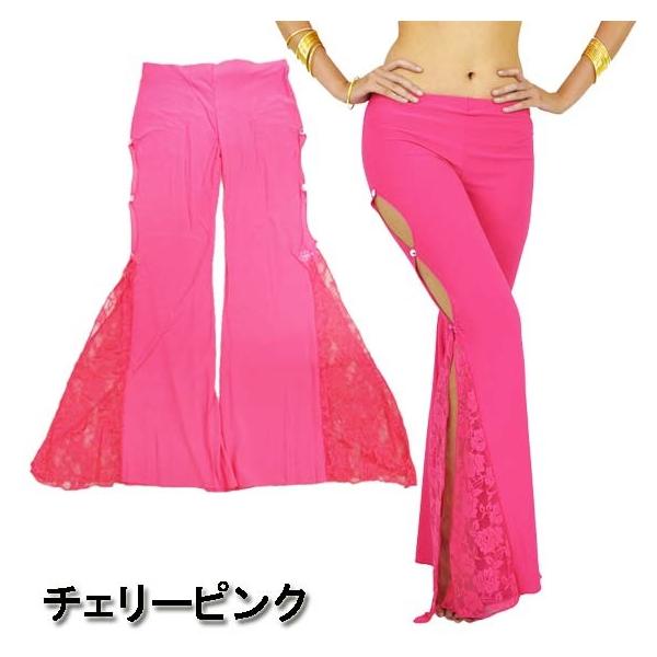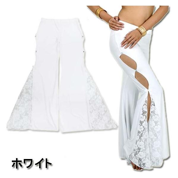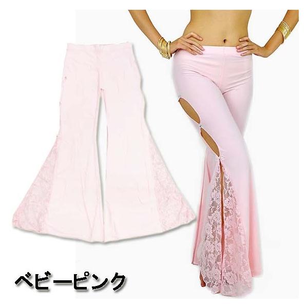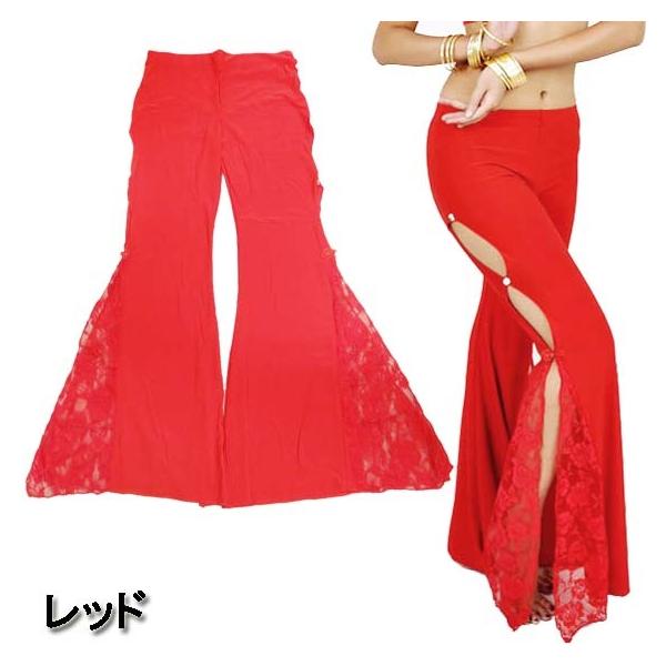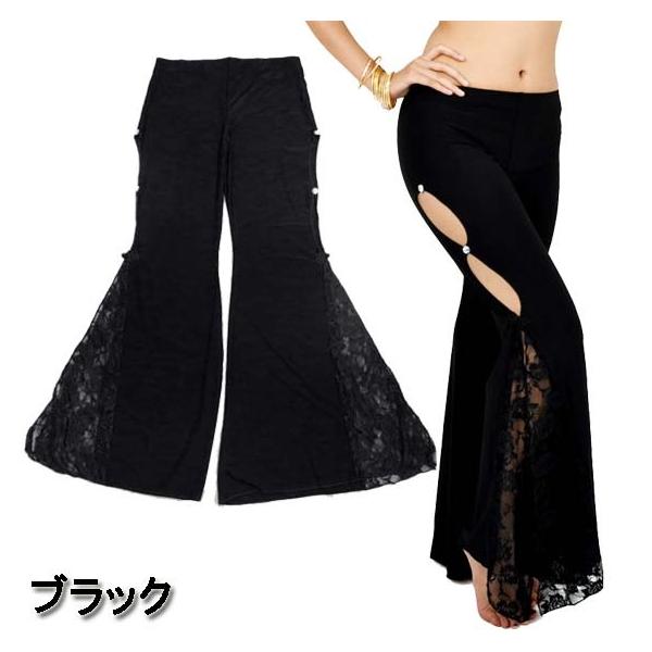 超ストレッチ!サイド開き 裾レース フレアロングパンツ/ブーツカット/ベルボトム ベリーパンツ ベリーダンス ジャズ 大きいサイズ レディース ダンス衣装