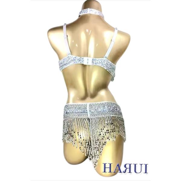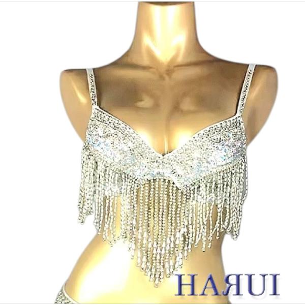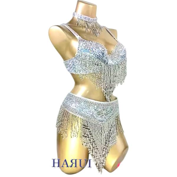 ベリーダンス衣装 オールスパン ブラ ベルト アクセ 3点セット シルバー