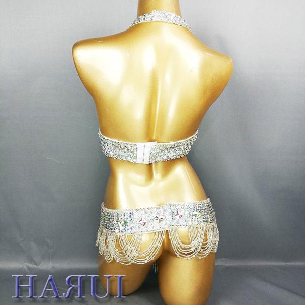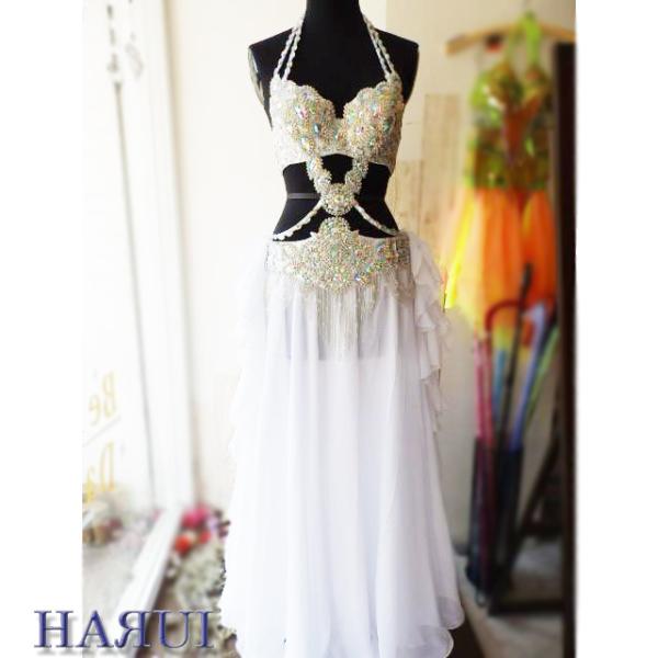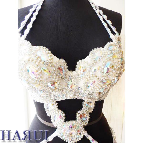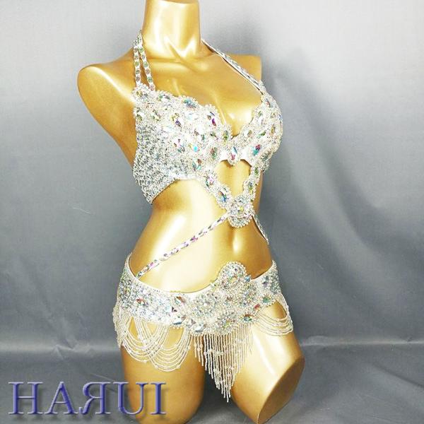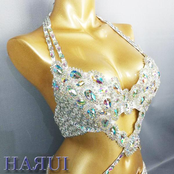 ベリーダンス 衣装 Vドロップ ブラ ベルト 上下2点 セット シルバー ワンランクUP
