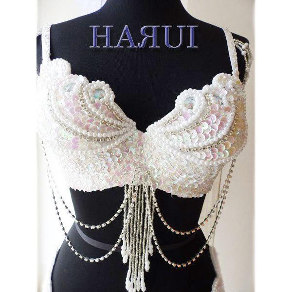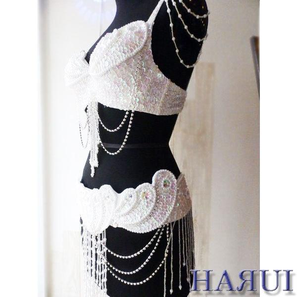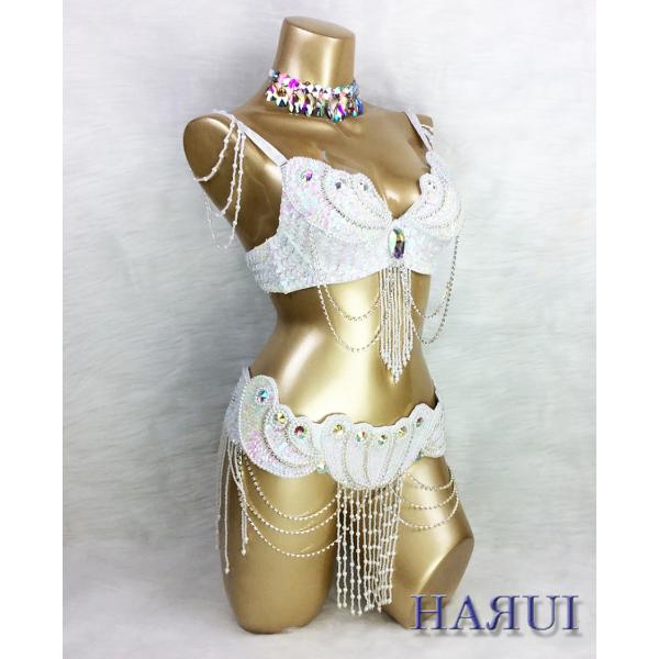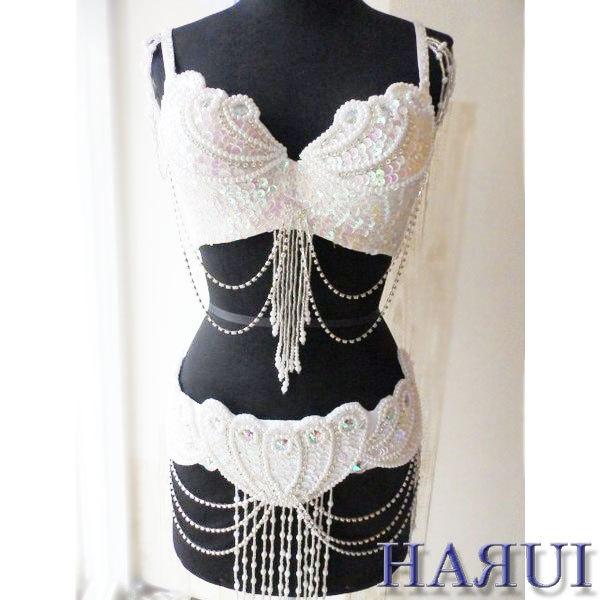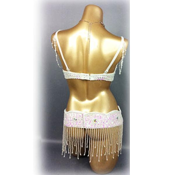 USサイズ ベリーダンス パールデザイン 衣装 ブラ ベルト 上下2点セット ホワイト
