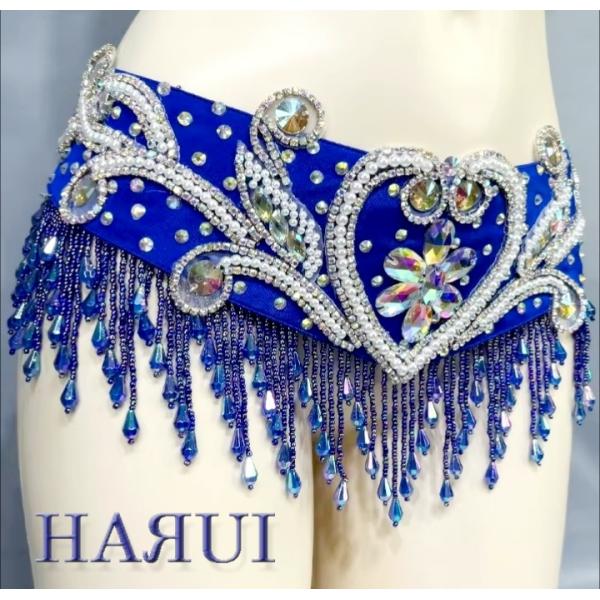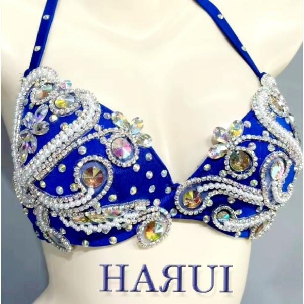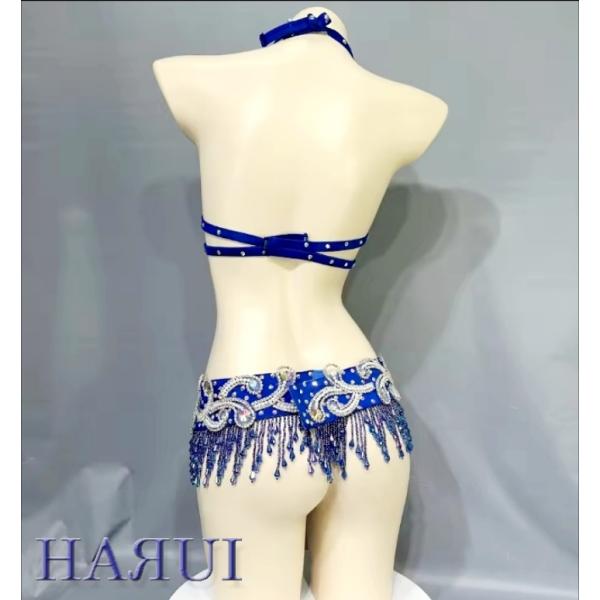 新入荷 ベリーダンス 衣装 ブラ ベルト 上下2点 セット 青