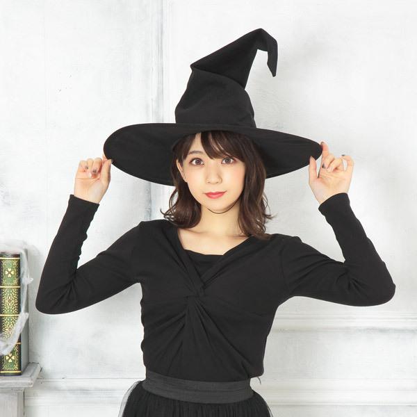 クラシカルウィッチ帽 ウィッチハット 魔女帽子 ハロウィン 大人用 黒 ブラック