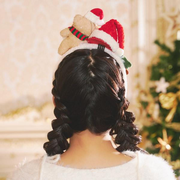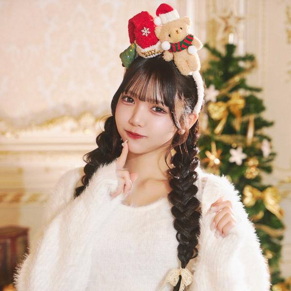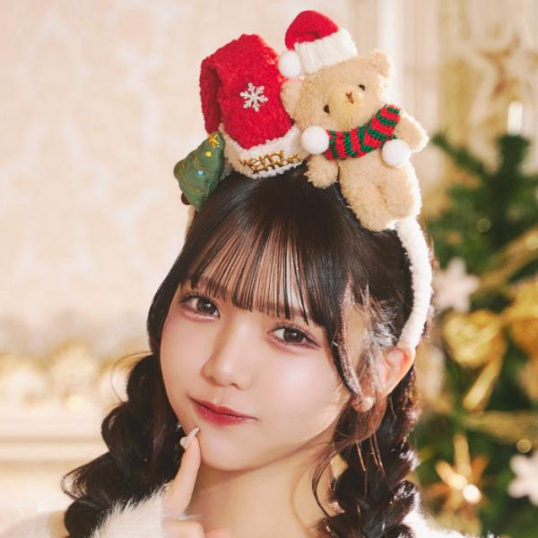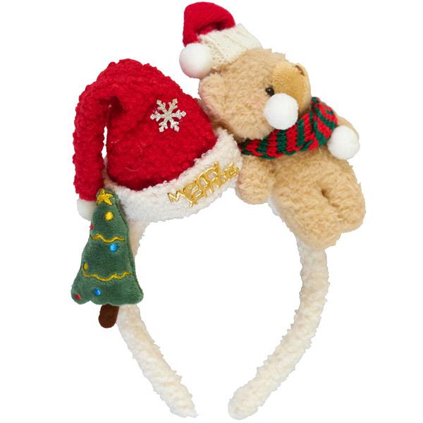 テディベア ボアサンタカチューシャ 赤 クリスマス サンタ帽 カチューシャ
