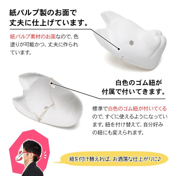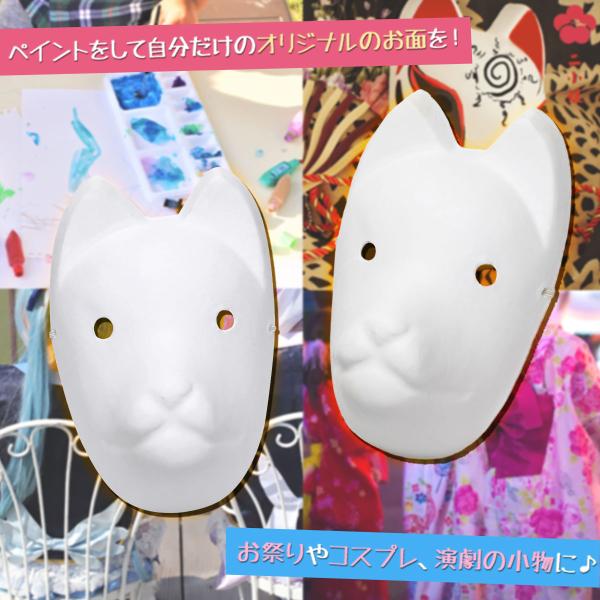 狐面 お面 狐 仮面 マスク コスプレ 無地 白 おめん ペイント 飾り お祭り 紙パルプ製 小サイズ 5枚セット