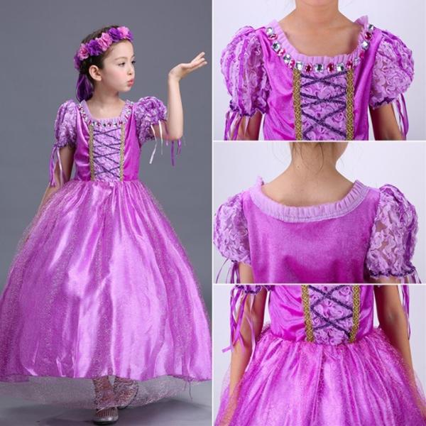 ハロウィーン クリスマス キッズ プリンセス 子供 衣装 仮装 キャラクター ハロウィン ラプンツェル ドレス 長袖 紫色 髪飾りセット コスチューム