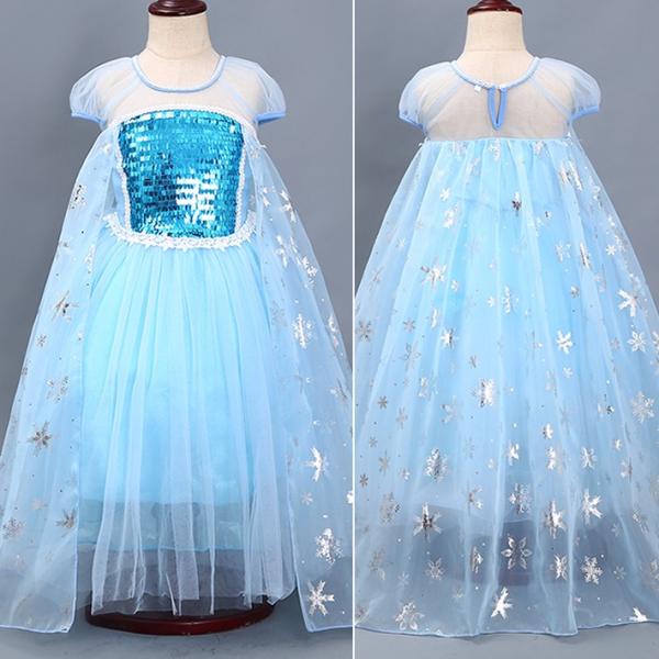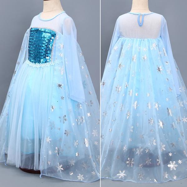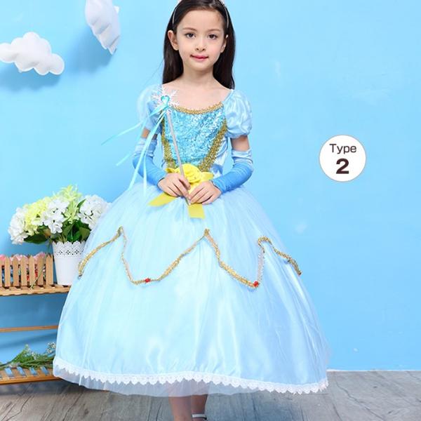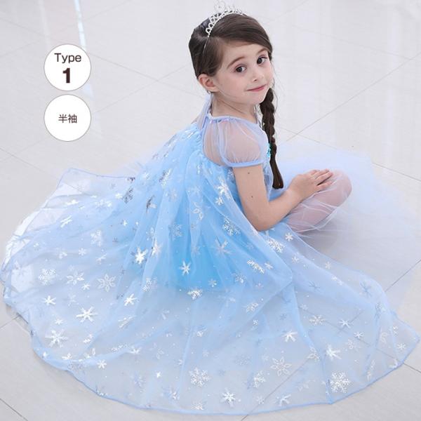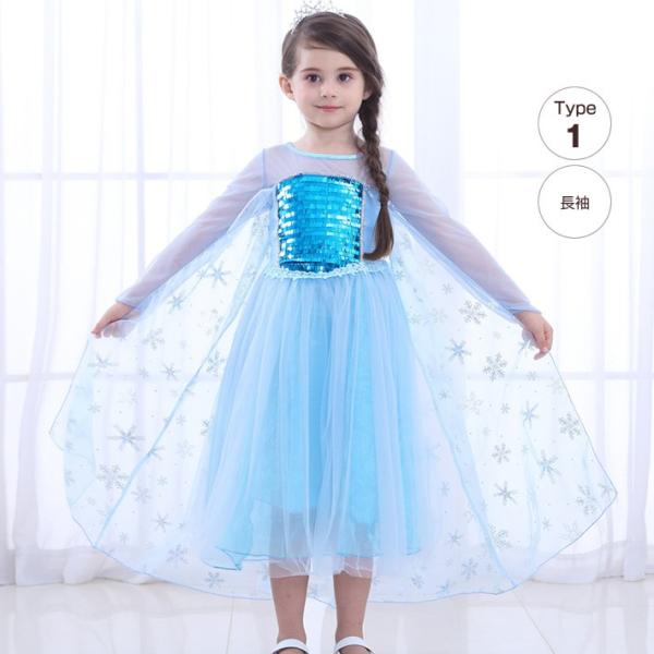プリンセス ドレス 子供 アナと雪の女王 エルサ風 長袖あり アームカバー 可愛い コスプレ 仮装 キッズ 女の子 ハロウィン 衣装 コスチューム お姫様 ブルー