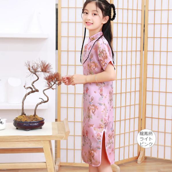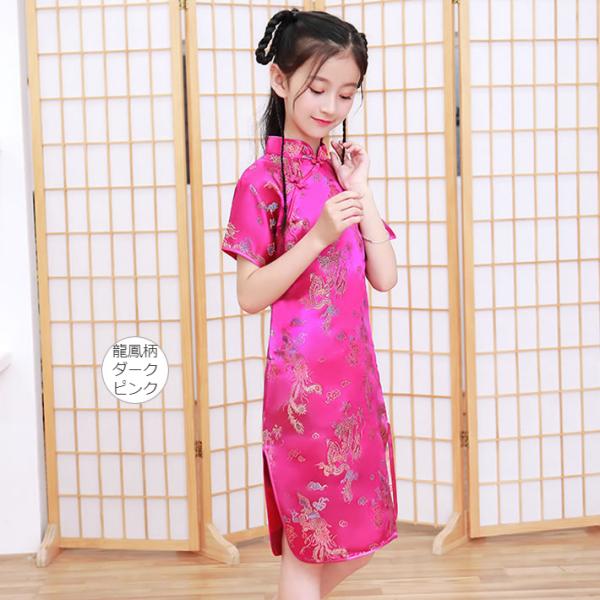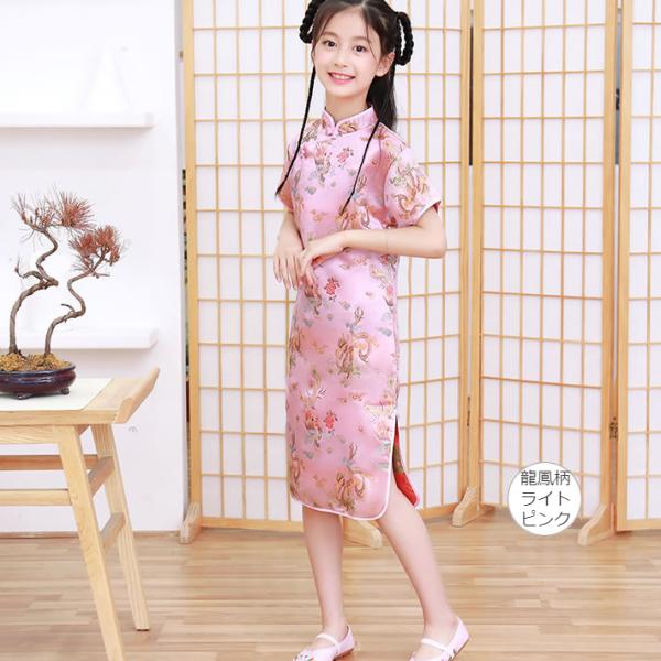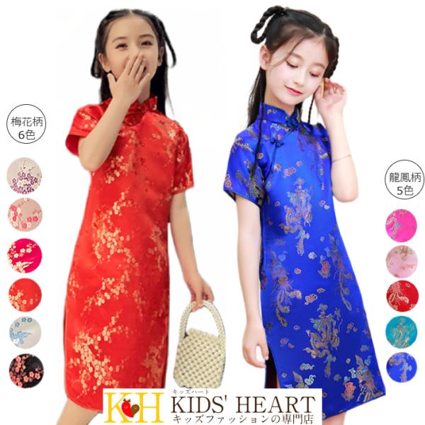 子供チャイナドレス ショート丈 チャイナ服 女の子 キッズ ガールズ コスプレ 制服 コスチューム 衣装 スリット ミニワンピ ミニスカート 龍 鳳凰 刺繍 送料無料