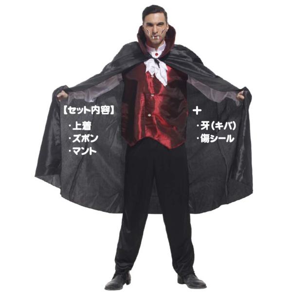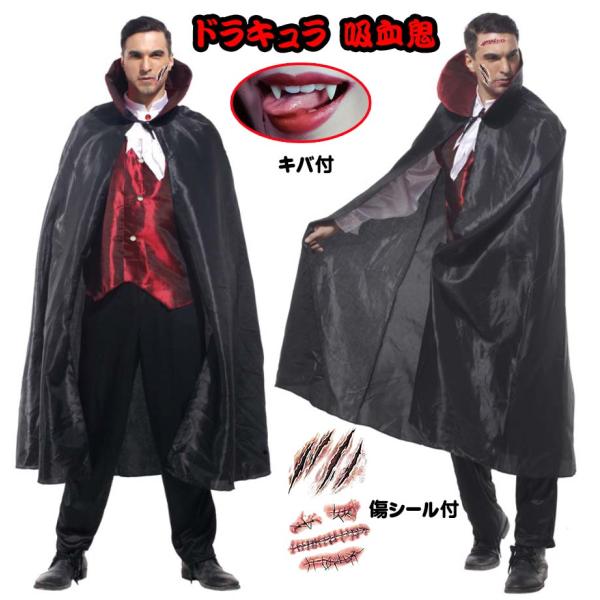 ドラキュラ 吸血鬼 ヴァンパイア コスプレ ハロウィン 牙 傷シール付 飾り 仮装 衣装 変装 装飾