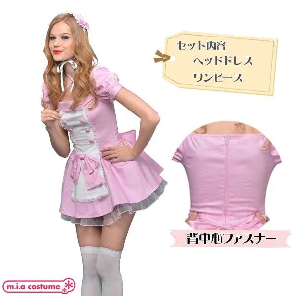 1113B★【送料無料・即納】 B品 NYW ピンクメイド サイズ:M(女性Lサイズ相当) メイド ミニ丈 ミニスカ タイト ピンク 大人用 仮装 コスプレ 衣装