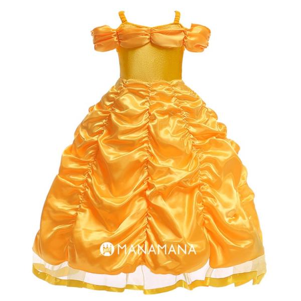 ベル ドレス 子供 用 キッズ 美女と野獣 Belle プリンセス ハロウィン コスプレ 女の子 衣装 コスチューム 誕生日 クリスマス プレゼント 110 120 130 140 cm
